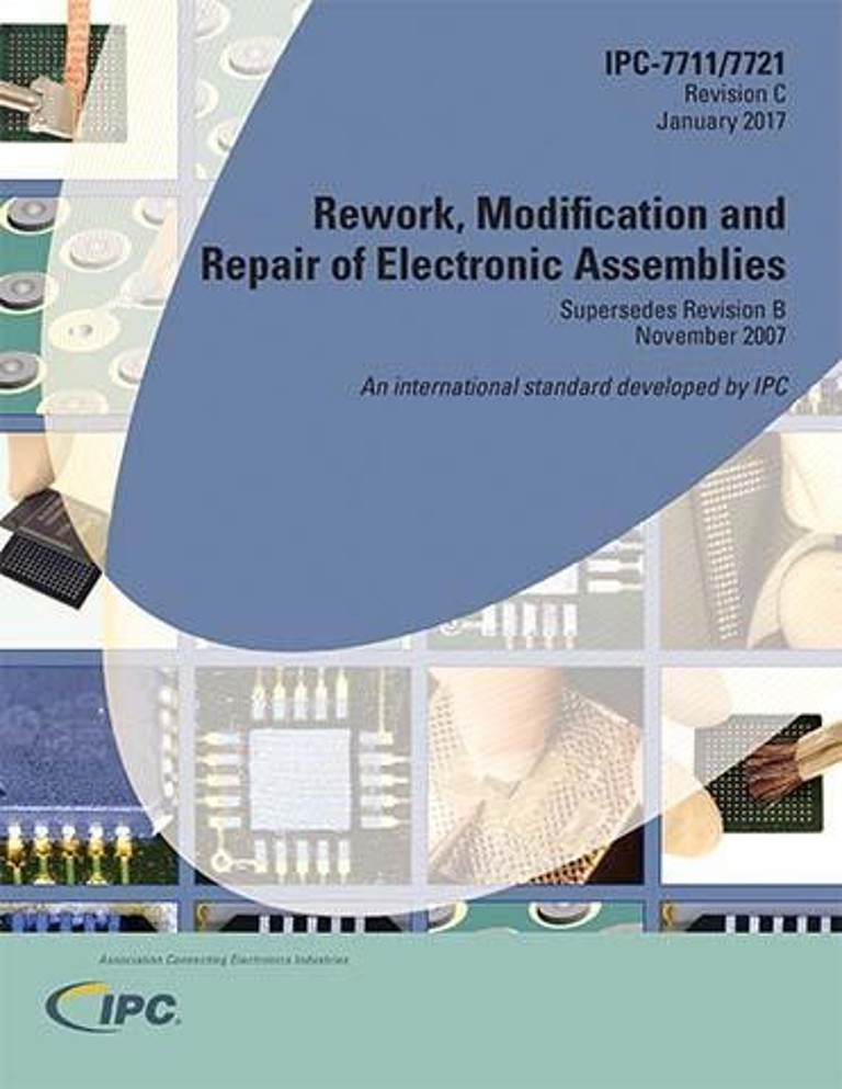 IPC:n tarjoama IPC 7711/21 -sertifiointikurssi keskittyy piirilevykokoonpanojen uusimiseen ja korjaamiseen. Tämä ohjeisiin perustuva standardi sisältää yksityiskohtaiset menettelyt uudelleentyöstöä, korjausta ja muuntamista varten, mukaan lukien komponenttien irrotus ja asennus, telaketjun ja laminaatin korjaus, mukautuvan pinnoitteen poisto ja BGA-palautusmenetelmät, kaikki alan hyväksyttävyyskriteerien mukaisesti.